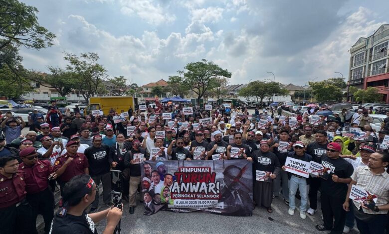 SHAH ALAM, 7 Julai – Lebih 300 orang menyertai satu perhimpunan aman semalam di Shah Alam, Selangor, bagi mendesak Perdana Menteri Datuk Seri Anwar Ibrahim meletakkan jawatan.