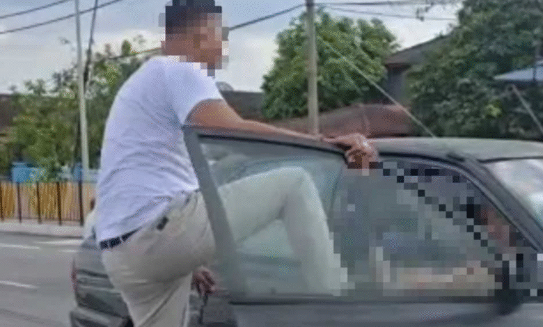 Kejadian berhampiran lampu isyarat Pekan Suntex itu tular menerusi video memaparkan suspek menendang dan memukul mangsa yang masih berada di tempat duduk pemandu, selain memaki hamun dan mengeluarkan ugutan.