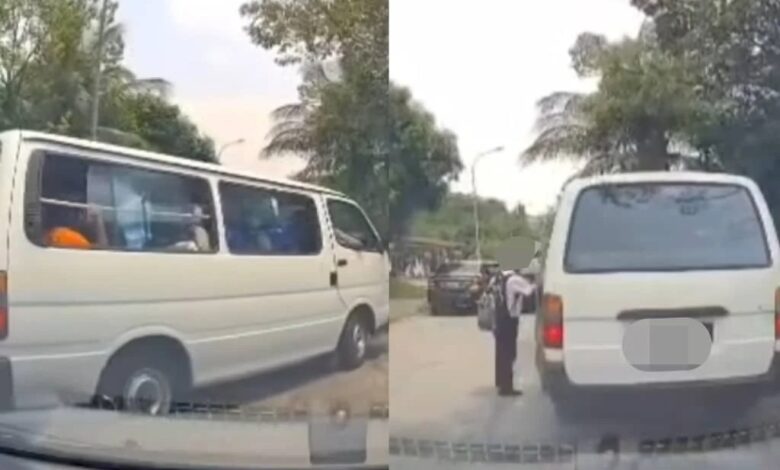 Polis menahan pemandu van sekolah yang menurunkan dan mengambil dua pelajar sekolah dalam keadaan bergerak yang mana ia turut tular di media sosial.